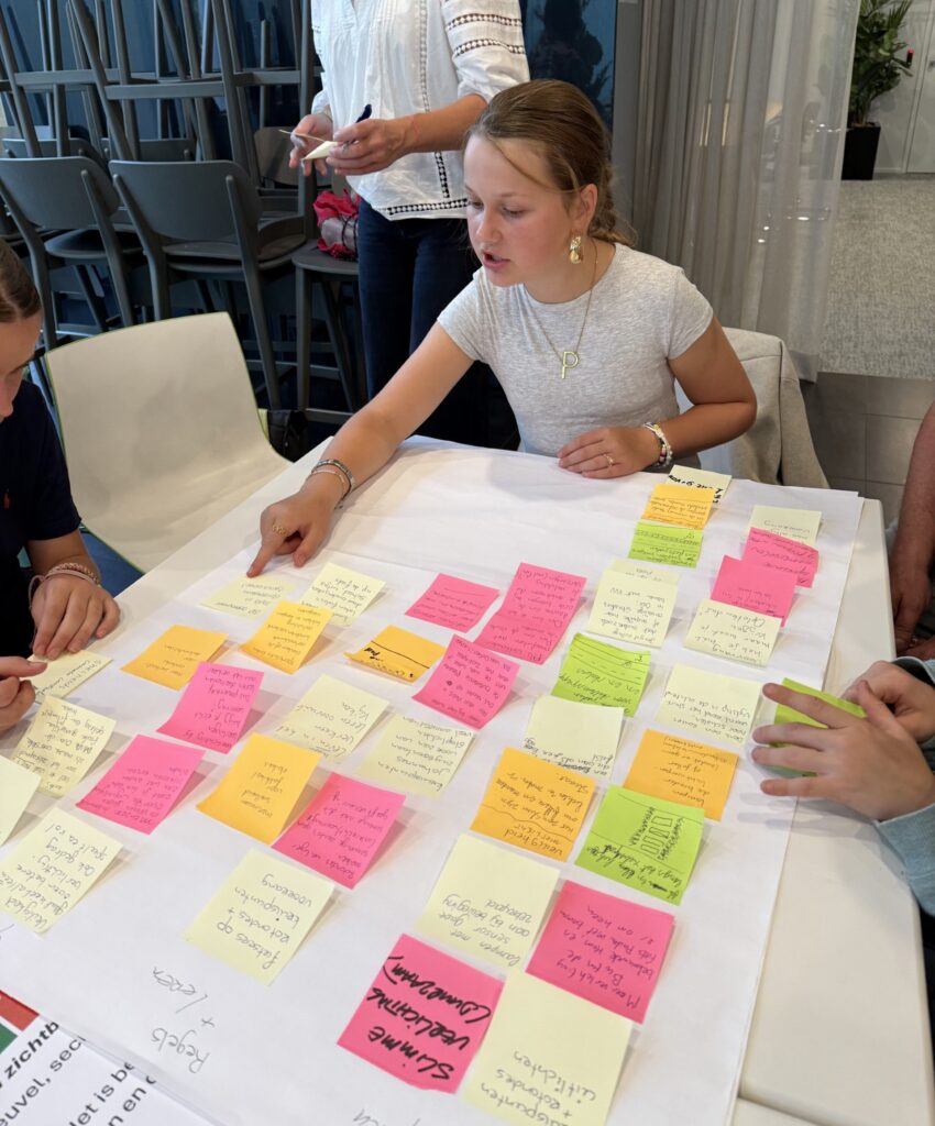 Brainstormsessie, waarbij het Jeugdcollege ideeën voor de toekomst wilde ophalen rond vier thema’s:
